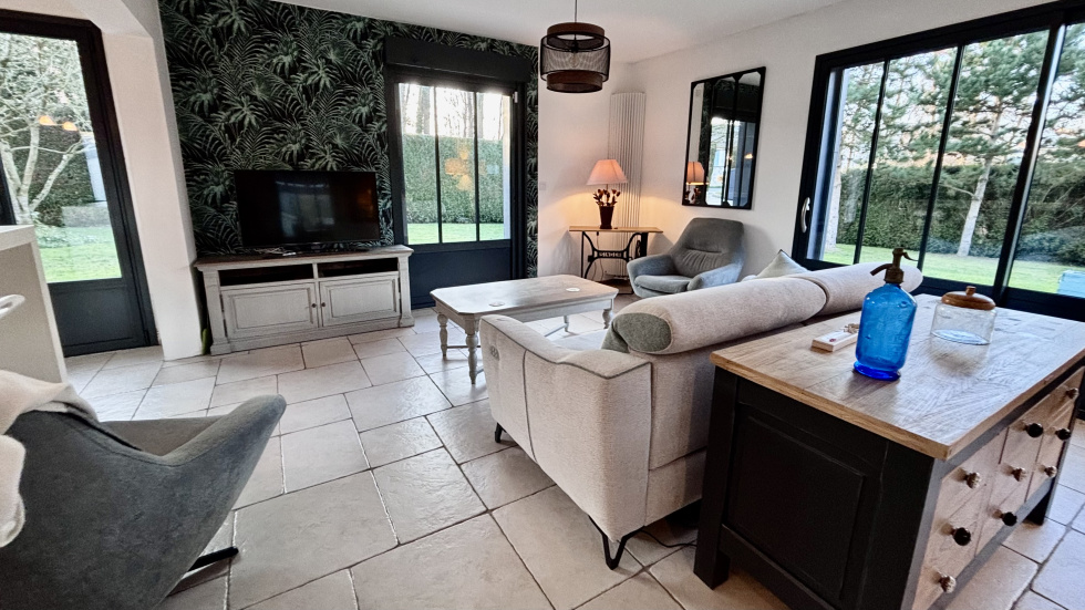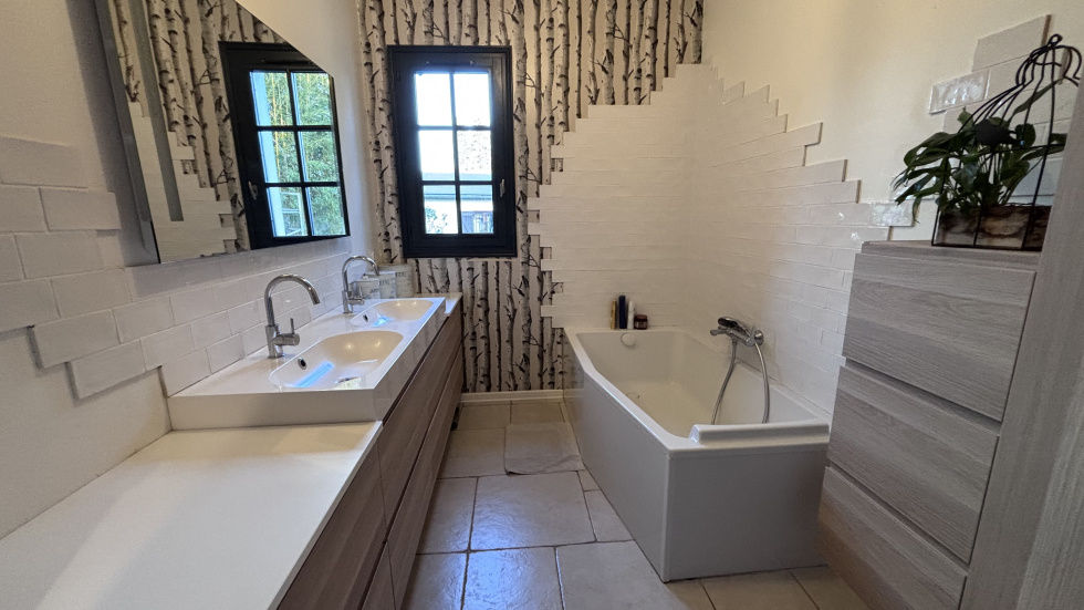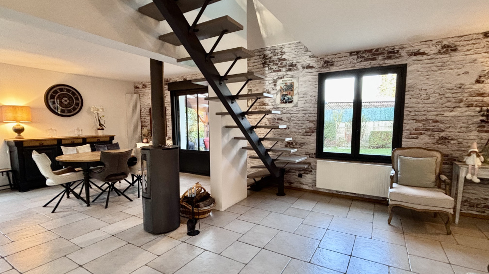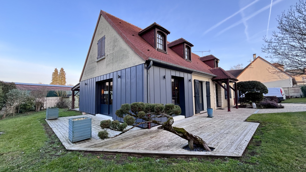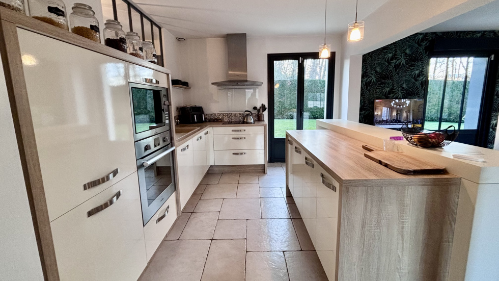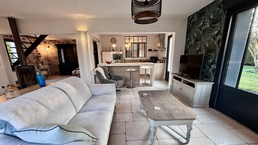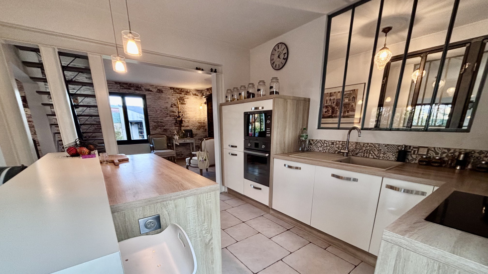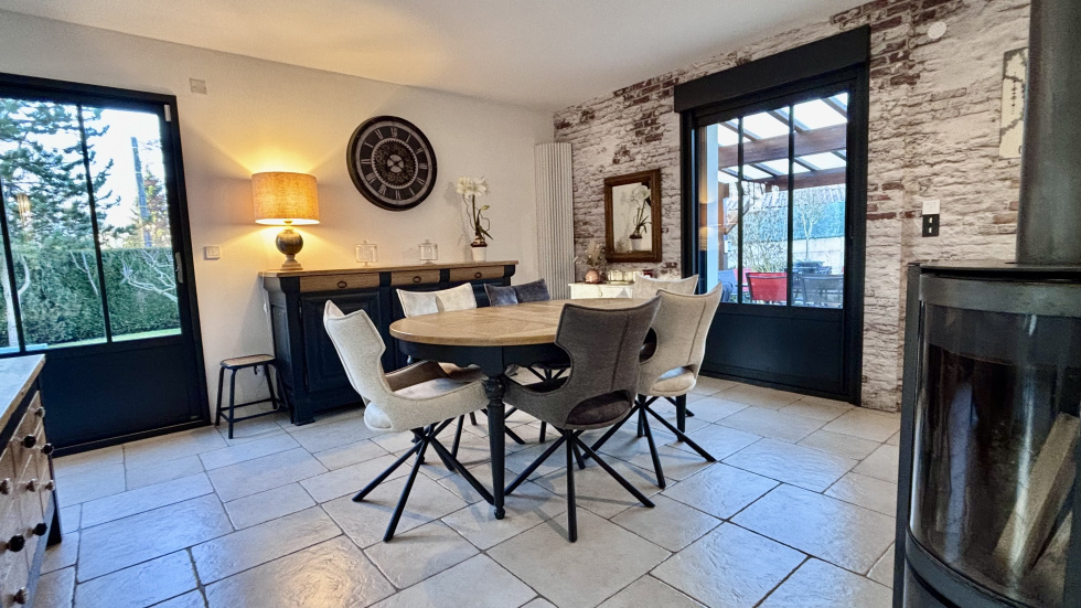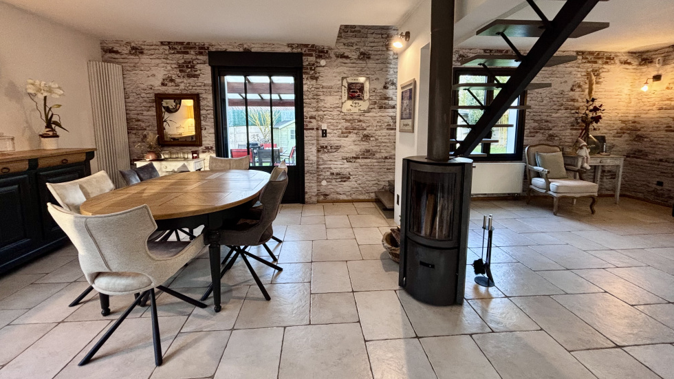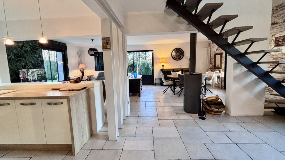 COUP DE COEUR, POSEZ-VOS VALISES! SOISSONS: idéalement située à seulement 15 minutes à pied du centre-ville, et à 15 minutes à pied de la gare dans un environnement calme et à proximité de toutes les commodités, cette propriété habitable de plain-pied de 173m² se compose d'une entrée accueillante et spacieuse avec placards, un espace de vie ouvert de plus 60 m² avec un poêle à bois orientable, une cuisine ouverte totalement équipée, un espace nuit comprenant: wc, 3 chambres (dont une qui est actuellement utilisé comme dressing, et une autre comme bureau disposant d'un accès indépendant: idéal pour les professions libérales), salle de bains avec double vasques, et une partie buanderie chaufferie, à l'étage: une vaste pièce palière baignée de lumière de plus de 40m², 2 chambres (une de plus de 18m² et une de d'environ 9m²), une salle d'eau avec wc. Vous serez séduit par ses volumes généreux, son agencement parfaitement étudié, et ses nombreuses ouvertures qui la rendent extrémement lumineuse et agréable à vivre. Côté extérieur: double terrasse (total d'environ 50m²) un car-port 2 véhicules, un garage servant de stockage, et un appentis pour le bois, Terrain entièrement clos et sans vis-à-vis de 1345m².